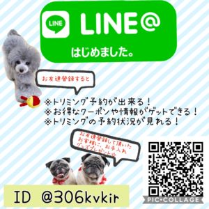 トリミング・ペットホテルのご予約はお電話、LINE@、ご来店にて受け付けております。