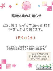 誠に勝手ながら 1月9日(土) を臨時休業させて頂きます。