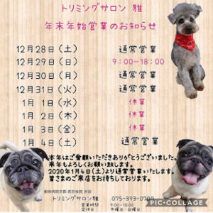 本年はトリミングサロン雅をご愛顧いただきありがとうございました。