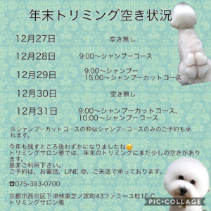 そんな中、トリミングサロン雅は31日まで元気いっぱい営業しています(^_-)-☆