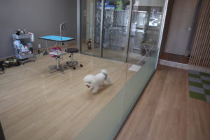 トリミング室から個室での様子が見えるのですぐに目が届くので安心です(*^-^*) 寂しくなってもすぐ声掛けできます☆