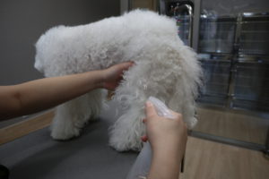 わんちゃん達の中には、手足の先やお尻辺り、しっぽを触られるのが嫌な子が多いように思います。